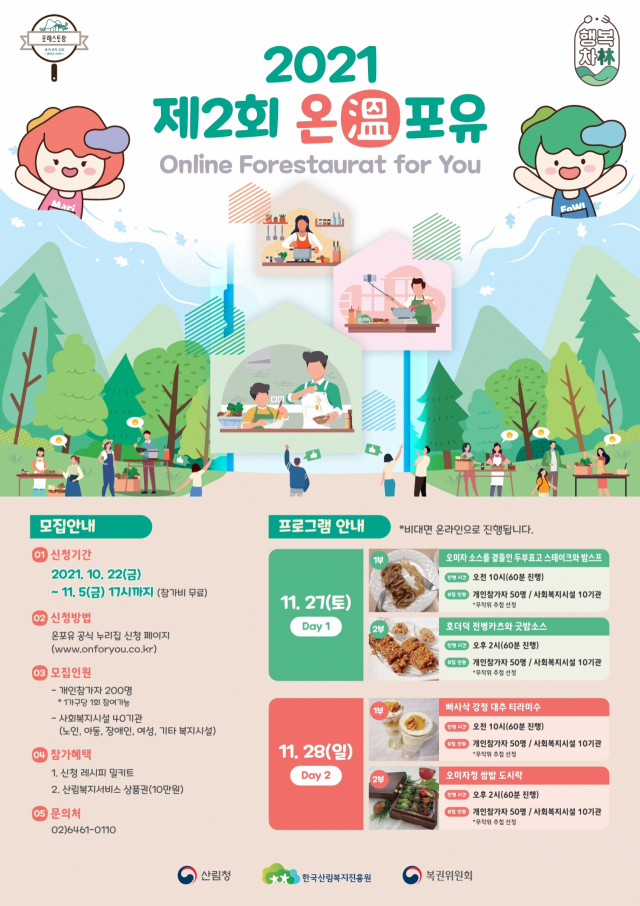 이번 행사는 지난 7월 개최된 포레스토랑 치유음식 레시피 공모전 수상작중 호도덕 전병카츠와 굿밤소스 빠사삭 강정 대추 티라미수 오미자청 쌈밥 도시락 오미자 소스를 곁들인 두부표고 스테이크와 밤스프 등 4개...